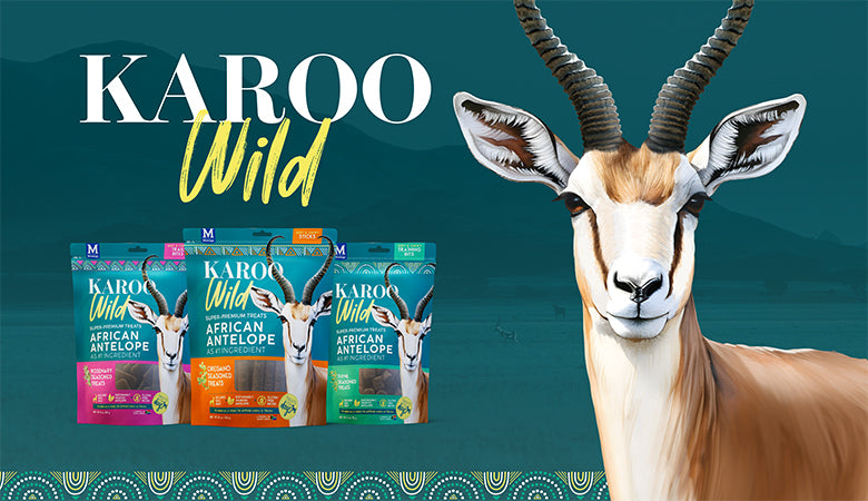 Karoo Wild dog treats are packed with wholesome ingredients and all-natural flavors, with free range, organic African antelope as its number one ingredient. This lean, high-protein snack has a distinctive, gamey taste most dogs love!